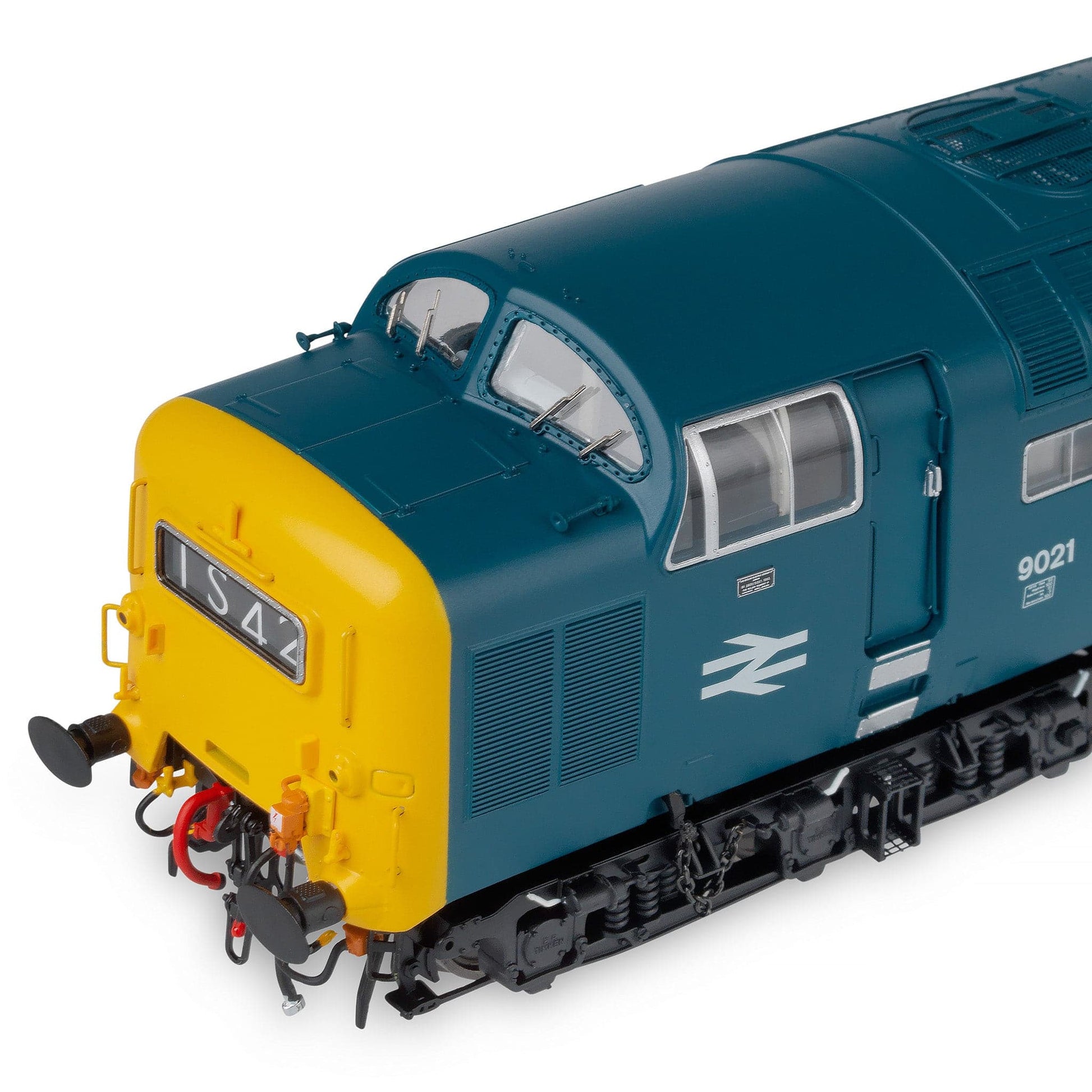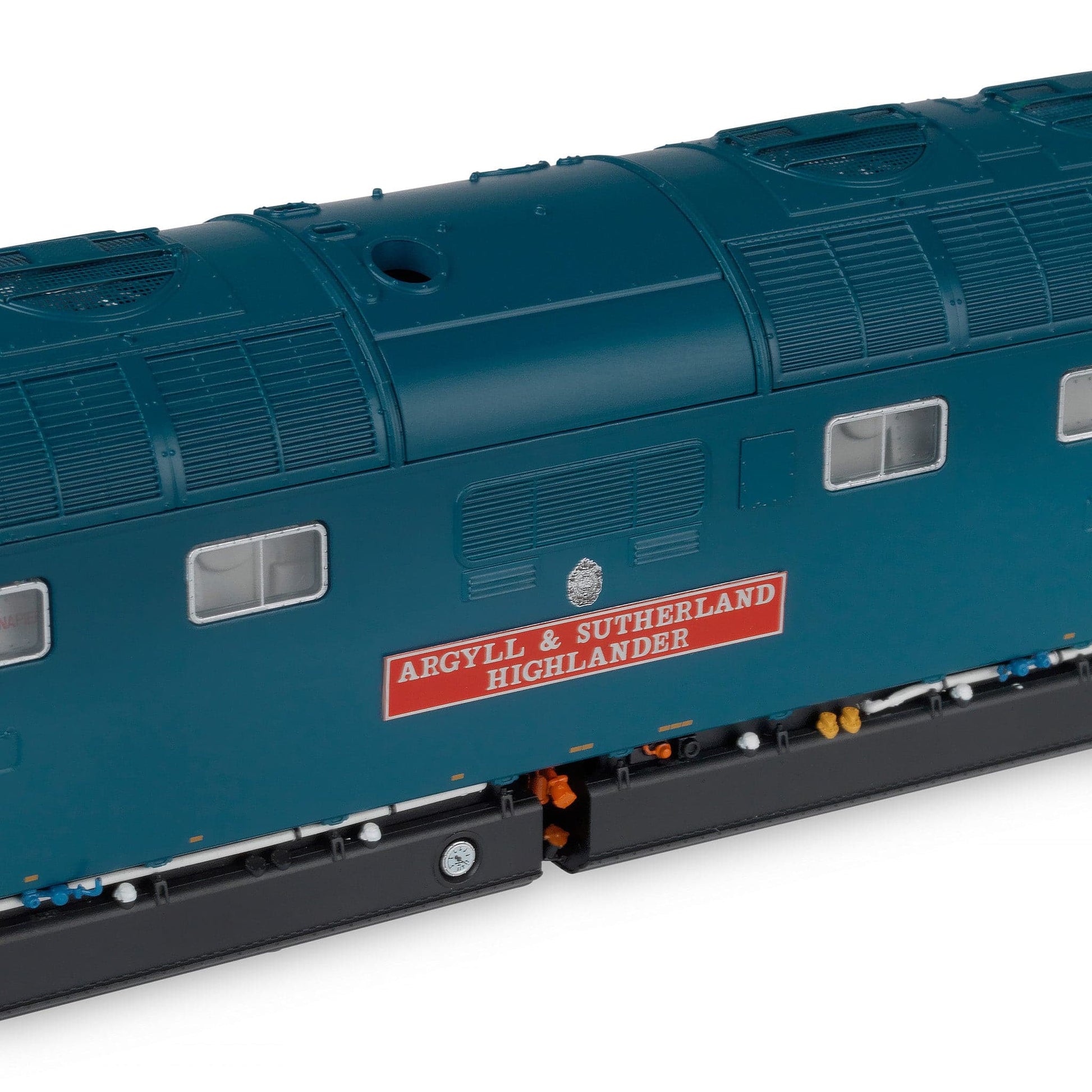 - Pièces détaillées en métal gravé et en plastique haute fidélité appliquées séparément, y compris poignées de maintien, marches, essuie-glaces, plaques signalétiques, écussons et plus encore.