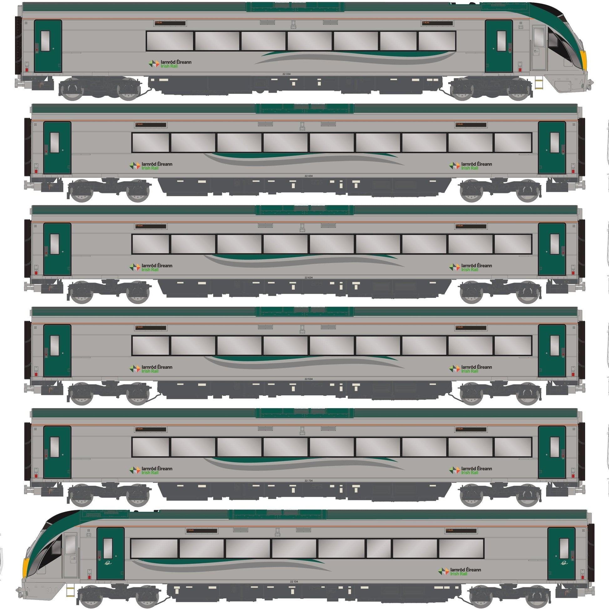 - Après 2013, la marque « Intercity » a été remplacée par la marque Iarnród Éireann/Irish Rail, avec une numérotation de véhicule 22xxx.