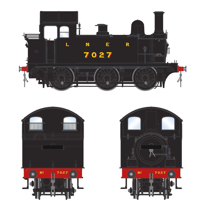 Built at Stratford,as GER No.27, in December 1913, the locomotive was allocated to Cambridge Shed from new and by Grouping was present at Peterborough East on shunting duties, before being renumbered as 7027 under the LNER. The distinctive high arched roof was removed in August 1925, being replaced by an LNER pattern elliptical steel roof and the three bunker rails were filled during October 1928. 7027 was also the pioneer locomotive for the trial fitting of grease lubrication to the coupling pins and connecting rods in 1936.