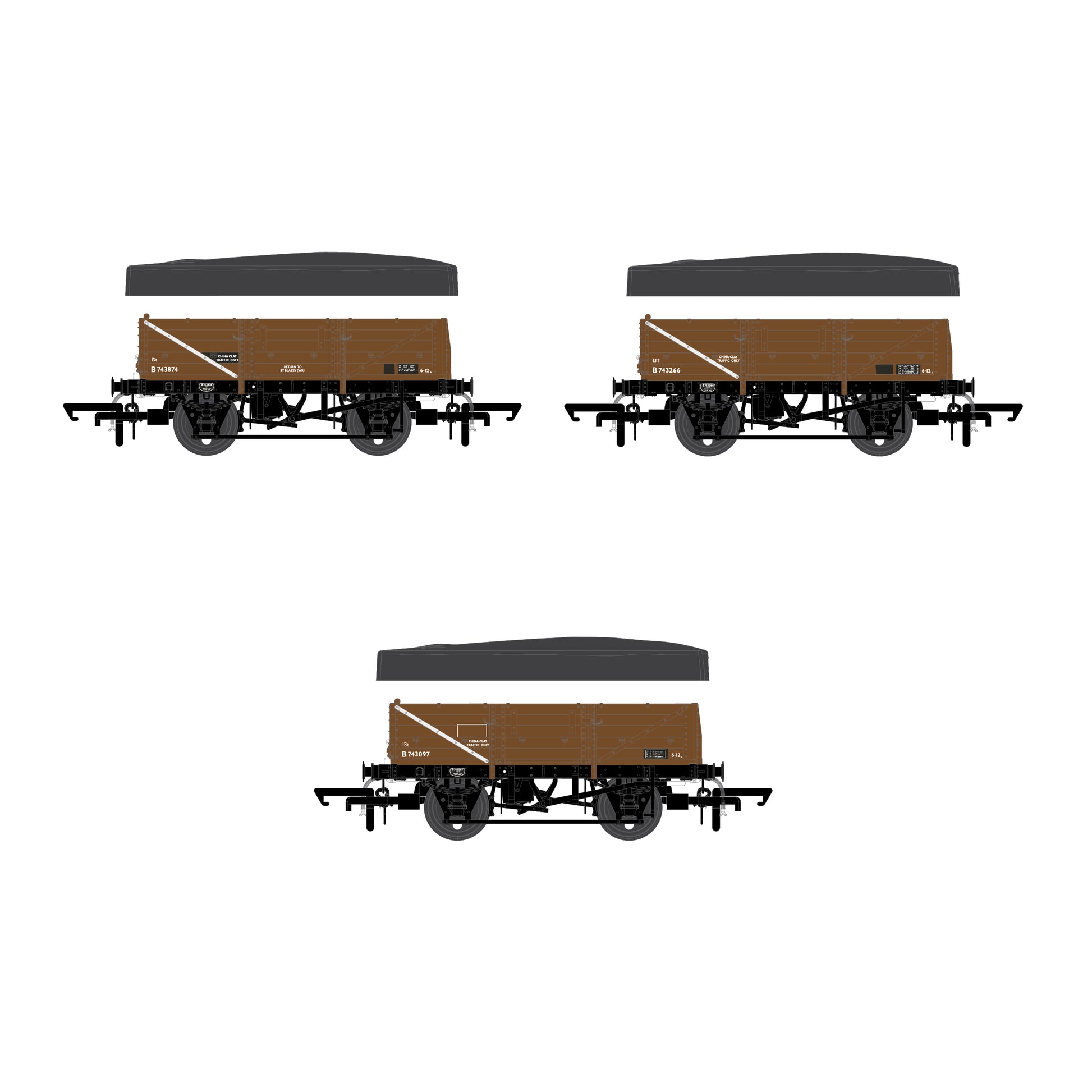 BR built a total of 875 of these Kernow icons across several batches from 1954 up until 1960. The "Clayhoods were built to complement and eventually replace the GWR O.13 clay wagonsย Running in short branchline trains all the way up to 50 wagon mega block trains, this staple of Cornish railway scene were withdrawn and replaced by the air braked CDA wagons in 1988.