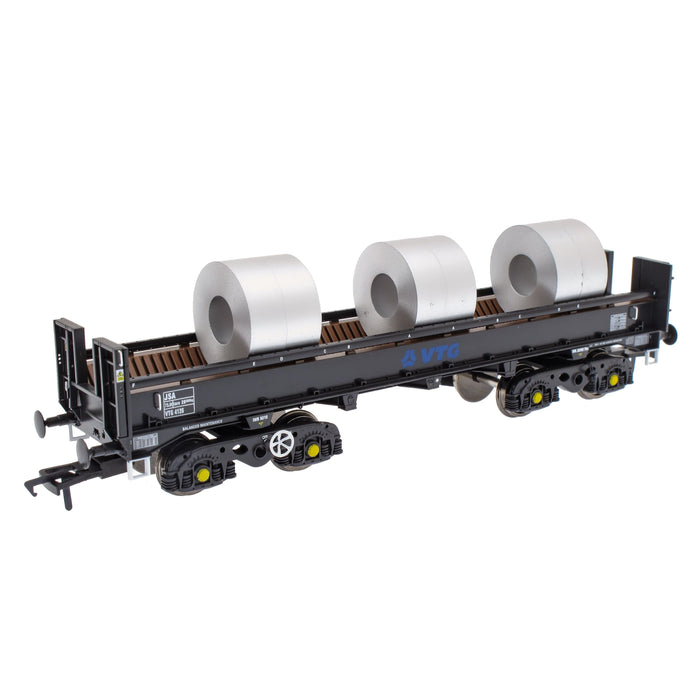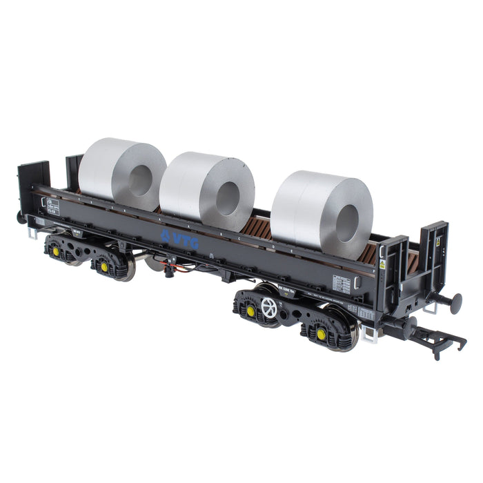 This pack contains two wagons, with three Steel Coil loads on each: