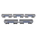 - NEM narrow tension lock couplers provided for Outer vehicles, with Knuckle couplers provided for inner vehicles.